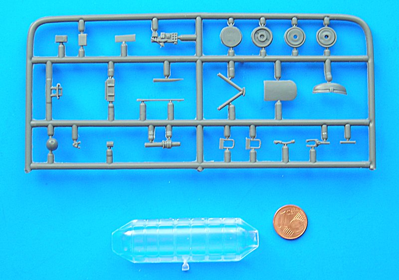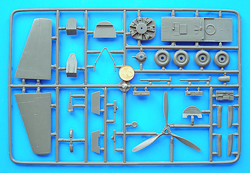 Etwas enttäuschend finde ich auch die Ausstattung des Bausatzes. Natürlich gibt es von AZ Model zwei extra Ätzteilbögen (eigentlich 3, denn es gibt je eines für US und Commonwealth Cockpits) und Masken , die zusammen mit weiteren ca. 30 Euro den Bausatzpreis auf gute 70 Euro schrauben. Zumindest einen rudimentären Satz mit Instrumenten und Gurten hätte der Hersteller ruhig beilegen können. Das Cockpit sieht auch in Plastik ganz ordentlich aus, auch wenn man hier viel tun kann. Das lohnt aber nur, wenn man die Kanzel öffnet bzw. zumindest teilweise durch ein Tiefziehteil ersetzt. Auch für den Einbau der Abwehrbewaffnung, muss das Klarteil zersägt werden.