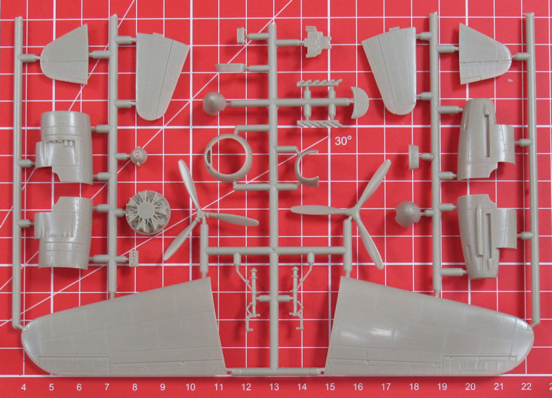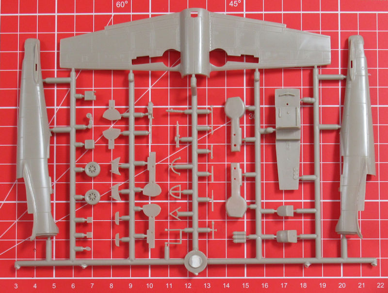 Der Aufbau der Tragfläche ist so gewählt, dass es scharfe Hinterkanten an Rudern und Klappen gibt. Die unterschiedlichen Seitenleitwerke sowie die beiden Hälften des Höhenleitwerks bestehen aus einem Stück und die Hinterkanten sind dadurch wieder scharf. Optional sind beide Motorvarianten möglich und die Teile werden einfach entsprechend Wunsch verbaut. Die lange Verglasung ist leider nicht weiter unterteilt. Nur die Frontverglasung ist ein Einzelteil.