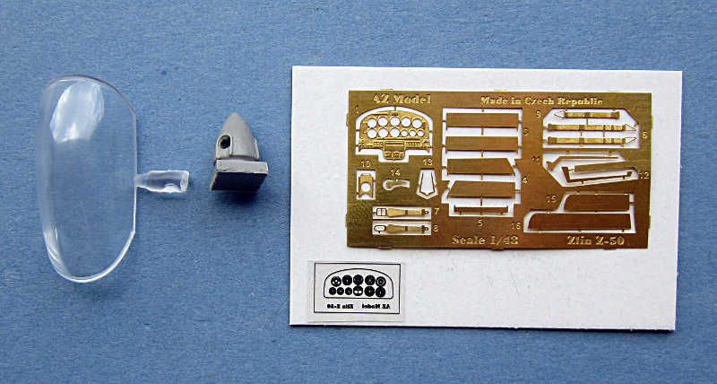 Bausatz: AZ Model hat kürzlich eine weitere Box des hauseigenen Z-50 Bausatzes herausgebracht. Diese enthält die bekannten Plastikteile und Bemalungen für 3 Flugzeuge. Einzig die Fotoätzteile unterscheiden sich leicht von der von mir vor einigen Jahren vorgestellten Box (First Look). Die Bauanleitung bringt es auf 24 Baustufen, die auf einem A4-Blatt untergebracht sind. Wegen der Einfachheit der Konstruktion sollten hier trotzdem keine größeren Probleme auftreten. Ob das fragile Spornrad allerdings dauerhaft das Modell tragen kann, wird sich zeigen.