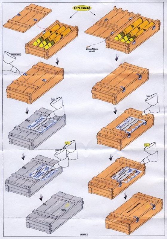 Auch bei diesem neuen Set hat der polnische Hersteller wieder sein Möglichstes versucht, um den anspruchvollen Militärmodellbauer zufrieden zu stellen. In der im Lasercutverfahren gefertigten Munitionskiste finden wir die passende Munition aus gedrehten Messing- und Aluteilen, Ätzteile für "Nägel", Verschlüsse und Hülsenböden sind genauso vorhanden wie auch die Decals der Munitionsbeschriftung. Es können zwei verschiede Deckel gebaut werden, eine zum Aufklappen oder die einfachere zum Auflegen. Auch an die Kennzeichnung der "Munikiste" wurde gedacht, eine Schablone zum aufbringen der Beschriftung liegt den Ätzteilen bei.