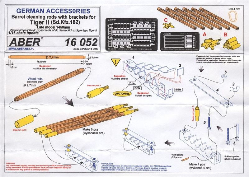 Als aktuelle ABER Neuheit im großem Maßstab 1/16 gibt es ein weiteres gelungenes Zubehör-Set für die Rohr-Reinigungsstangen und die Befestigung an deutschen Tiger II Panzern.