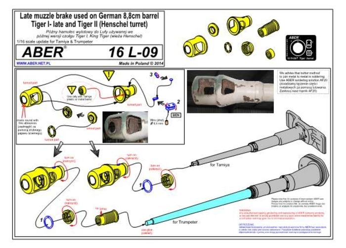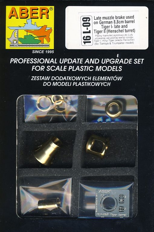 Als aktuelle Neuheit gibt es von ABER ein Professional Upgrade Set für die aktuellen späten Tiger I und Tiger II Modelle im Maßstab 1:16. Das neue Upgrade Sets enthält eine kleine Ätzteilplatine, sieben in Messing gedrehte Einzelteile für die Mündungsbremse und die ausführliche Einbauanleitung.