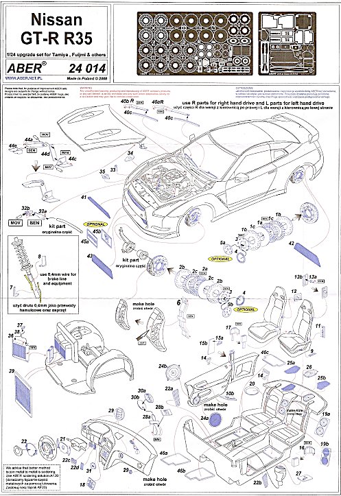 Eine weitere und völlig überraschende Neuheit des polnischen Herstellers ABER ist das hier vorgestellte Upgrade Set für die neuen Modelle des Nissan G-TR R35 von Tamiya, Aoshima und Fujimi. Nach dem Set für den Fujimi Golf V GTI ist dies das zweite Set des polnischen Herstellers für ein spezielles Fahrzeug.