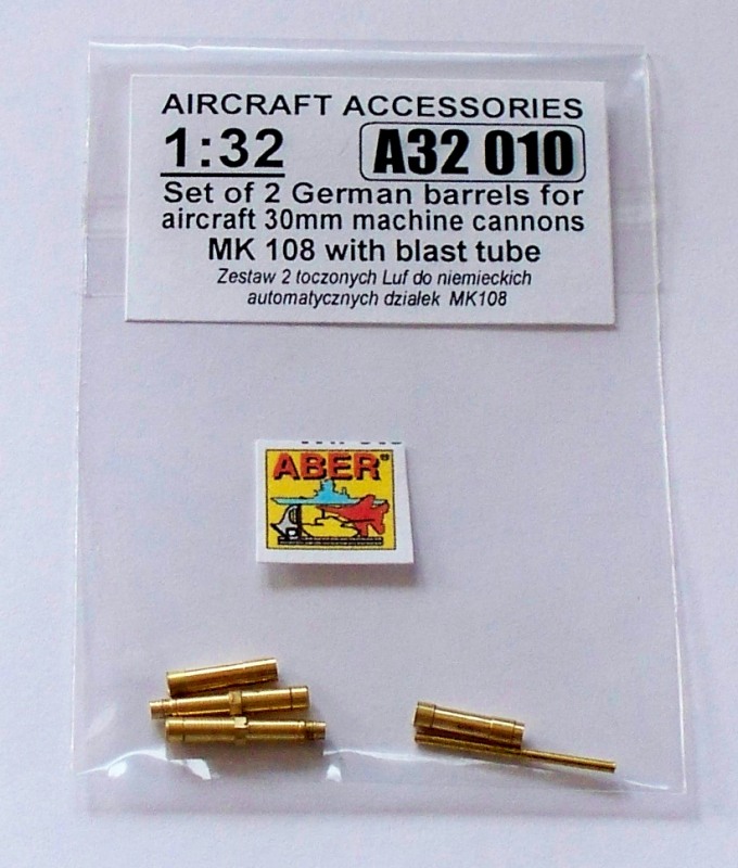 Detailset: Von ABER / ABER Aircraft Accessories aus Polen gibt es nun einen Satz von MK 108 Maschinenkanonen. Die aus Messing gedrehten Rohre sind für Flugzeugmodelle der ehemaligen deutschen Luftwaffe im Maßstab 1:32 gedacht.