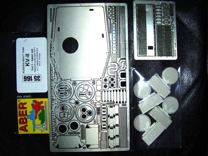 Neues für den KV II von Tamiya bringt uns dieses Basis Set von Aber. Hier wird zuerst die Original Oberwanne auf den OP Tisch gelegt, d.h. es werden die runden Öffnungen der Lucken erweitert sowie die rechteckigen Lüftergitter heraus getrennt. Das Dach des Turmes liegt als ganzes Fotoätzteil bei welches mit Teilen vom Tamiya Bausatzteil komplettiert wird. Dieser mit diesem Dach gebaute Turm bekommt dann noch schöne Schweißnähte, Griffe und die Optikabdeckungen.