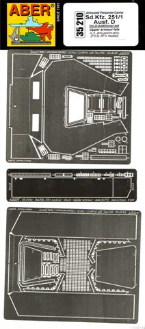 Dieser Ergänzungssatz ist für den oberen Aufbau der Halbkette bestimmt. Er beinhaltet 3 Ätzteilplatinen und die Einbauanleitung. Anhand der übersichtlichen Bauanleitung wird das gesamte Oberteil des 251/1 neu erstellt, komplett mit Fotoätzteilen. Die vordere Motorraumabdeckung kann geöffnet und geschlossen werden, eine Schablone für das anfertigen der seitlich, im Innenraum angebrachter Zusatzpanzerung ist ebenfalls im Ergänzungssatz enthalten.