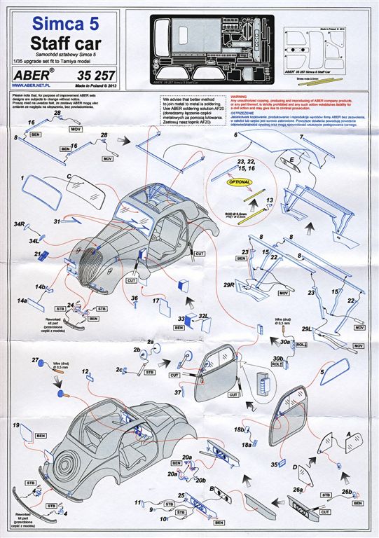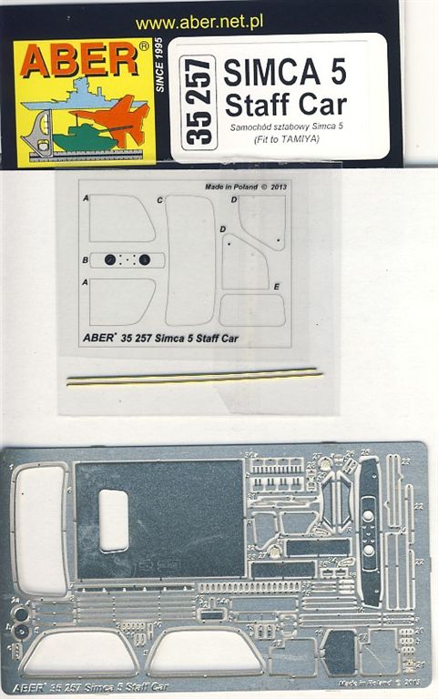 Als aktuelle Neuheit im Maßstab 1:35 gibt es von ABER einen kleinen doch recht feinen Ätzteilsatz für das TAMIYA Modell: German Army Simca 5 Staff Car.