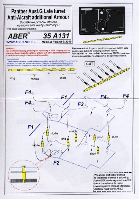 Für alle Panther G Modelle im Maßstab 1:35 kommt als Neuheit von ABER ein universelles Conversion-Set für das Turmdach heraus. Im neuen Set enthalten sind eine fotogeätzte Messingplatine, sieben Messingdrehteile und die Einbauanleitung.