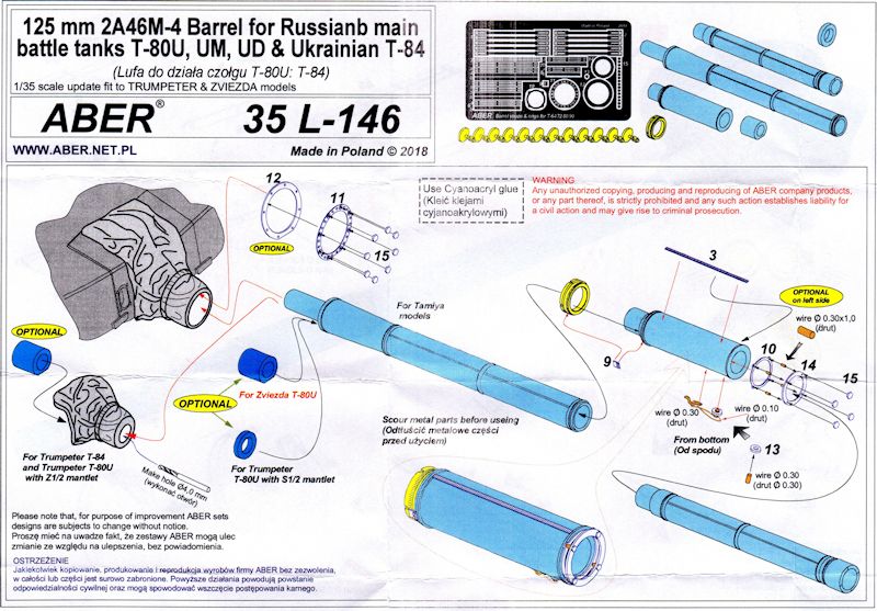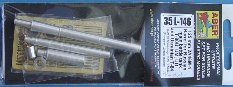 ABER, die Firma für gute Ätzteile und Alurohre, hat für die T-80 Modelle von Trumpeter bzw. Zvezda ein passendes Rohr herausgebracht. Hier muss man allerdings erwähnen, dass das Rohr aus mehreren Teilen besteht und auch noch ein Ätzteilsatz mit einer nicht unerheblichen Anzahl von Bauteilen enthalten ist.