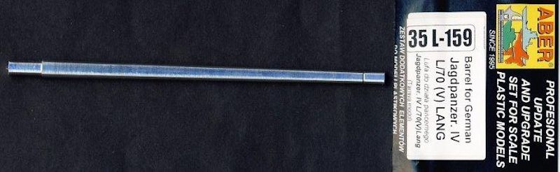 Für den deutschen Jagdpanzer IV L70 (V) LANG bringt ABER ein Aluminiumgeschützrohr heraus. Im Lieferumfang befinden sich das gedrehte Rohr mit den Rohrzügen im vorderen Mündungsbereich und die Einbauanleitung.
