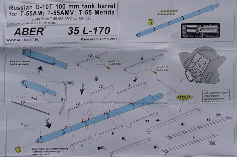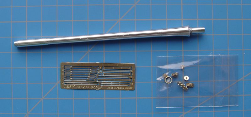 ABER, die Firma für gute Ätzteile und Alurohre hat für dieses Modell des T55AM -Bausatzes ein passendes Rohr in üblicher sehr guter Qualität herausgebracht. Nach einem Vergleich mit den Bausatzteilen überlegt man nicht lange ob der Kauf dieses Zubehör sinnvoll ist. Nein - bei diesem Vergleich freut sich jeder Modellbauer über einen solchen Zurüstsatz.