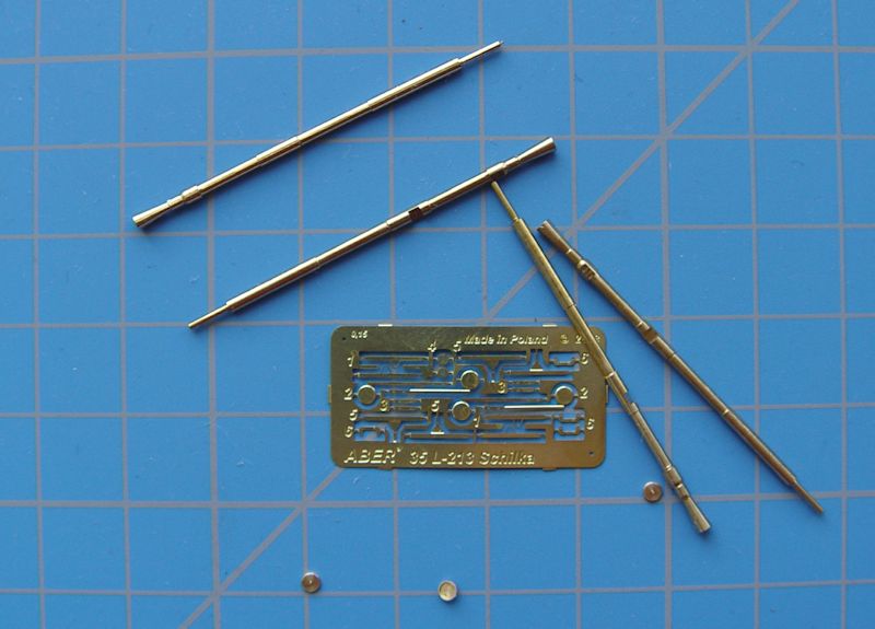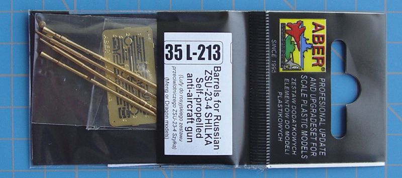 Wer das Modell der Selbstfahrlafette ZSU 23 "Schilka" (Fluss in Sibirien) bauen möchte hat jetzt die Wahl, entweder Plastikrohre aus dem guten Bausatz zu nehmen oder die verbesserten gedrehten Messingrohre von Aber. Man kann diesen Rohrsatz für die beiden verschiedenen Modellbausätze -von Dragon und Meng verwenden.