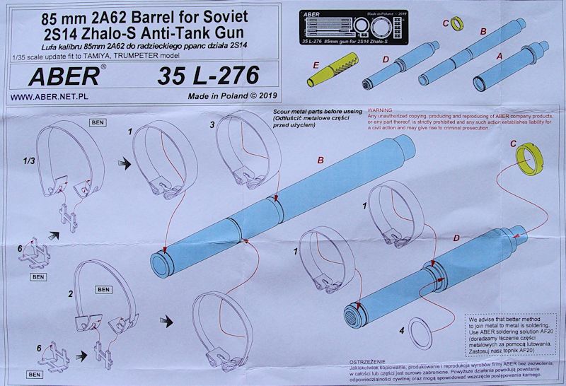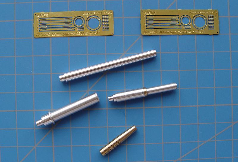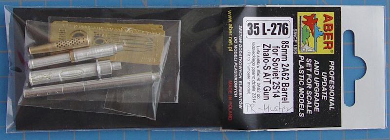 Die Firma Aber hat eine verbesserte Variante eines Panzerrohres für einen 2S14 Zhalo-S herausgebracht. Der Zhalo ist ein russisches Panzerjägerfahrzeug aus dem Jahre 1970, mit 8 Rad-Antrieb. Wer das Trumpetermodell bauen möchte hat jetzt die Wahl, entweder das Plastik-Rohr aus dem guten Bausatz nehmen oder das verbesserten Alu-Panzerrohr von Aber.