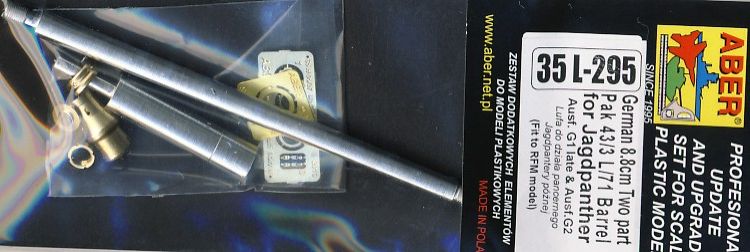 Für den neuen Jagdpanther Ausf. G1und G2 im Maßstab 1:35 von RYEFIELD MODEL, ist dieses neue Geschützrohr von ABER bestens geeignet. Das Geschützrohr ist in der neuen Generation mit vorderem Gewinde, zum Aufdrehen des Mündungsdämpfers gefertigt. Das Geschützrohr ist so ausgeführt, dass es perfekt in die vorhandene RFM Plastik Geschützrohrblende eingefügt werden kann.