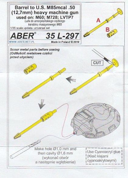 Für den Kommandantenturm des M60, M728 und dem Amphibien Truppentransporter LVTP7 hat Aber einen hervorragenden in Messing gedrehten Lauf dieses Maschinengewehr herausgebracht. Sogar die Mündungsbremse zeigt sich mit offenem Lauf. Und das in diesem Maßstab!! Auch der Messingaufsatz zeigt sich mit fein gedrehten Kühlungslöchern.