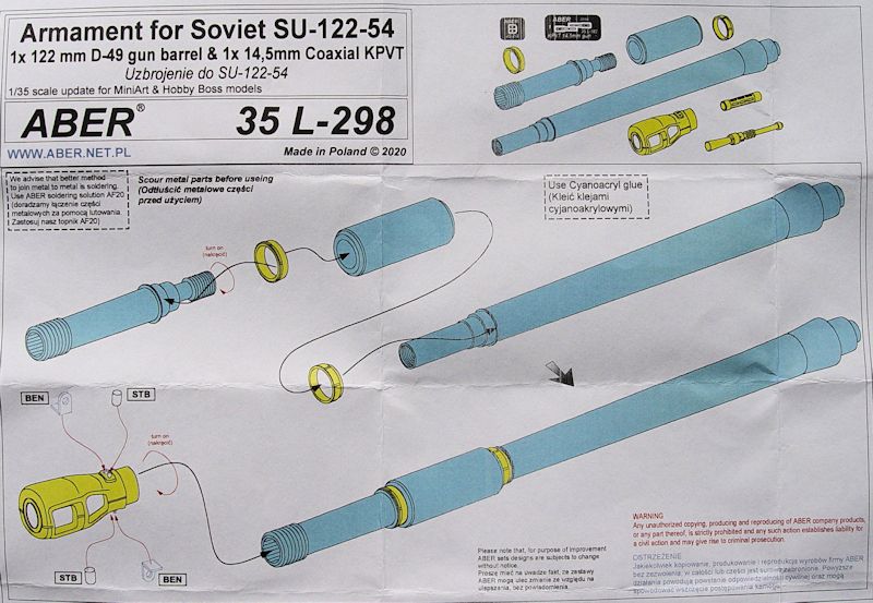 ABER, die Firma für gute Ätzteile und Alurohre hat für das Modell des SU-122-54 Bausatzes ein passendes Rohr und weiterhin für das Bord-MG ein verbesserten Lauf herausgebracht.
