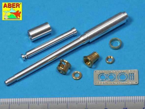 Für die mittleren/späten Tiger I Panzer im Maßstab 1:35 von Dragon ist dieses neue Geschützrohr von ABER bestens geeignet. Das Geschützrohr ist in der neuen Generation, mit vorderem Gewinde zum Aufdrehen des Mündungsdämpfers, gefertigt. Das Geschützrohr ist so ausgeführt das es perfekt in die vorhandene Dragon Plastik Geschützrohrblende/Verschluss eingefügt werden kann.