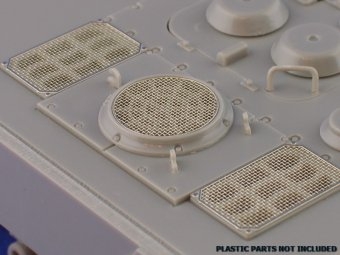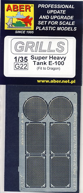 Für den E-100 von DRAGON gibt es als vorliegende Neuheit von ABER, die Gitter der hinteren Kühlerlüfter -und Gebläseabdeckungen. Wie immer sind die Ätzteilgitter in der gewohnten ABER Qualität, nicht nur "flach", sondern in gewebter Optik geätzt!