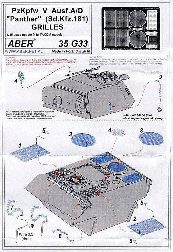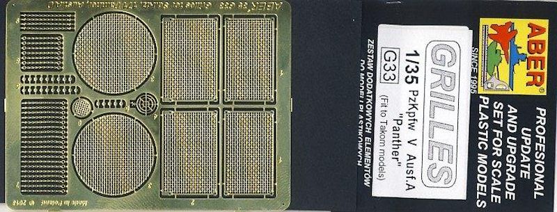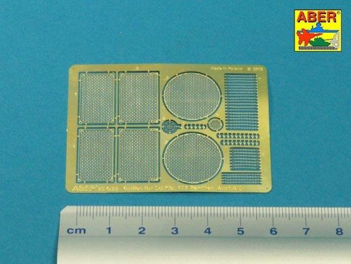 Von ABER gibt es die Gitter der hinteren Kühlerlüfter- und Gebläseabdeckungen für das Takom Modell Panther A, Mid-Late Production.