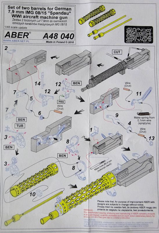 Bausatz: Das Set enthält sauber in Messing gedrehte Teile für zwei Maschinengewehre. Zusammengebaut ersetzen sie die den Bausätzen beiliegenden Kunststoffwaffen. Hebel, Visiere und andere Kleinteile liegen als Ätzteile bei.