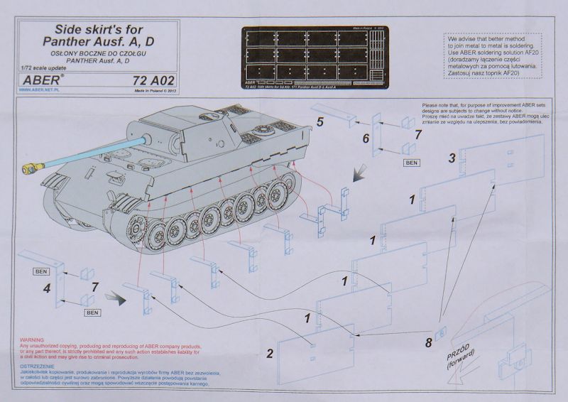Fazit: Ein sehr filigranes Set Seitenschürzen für die verschiedenen Pantherbausätze 1/72. Sehr empfehlenswert für Detailfreaks!
