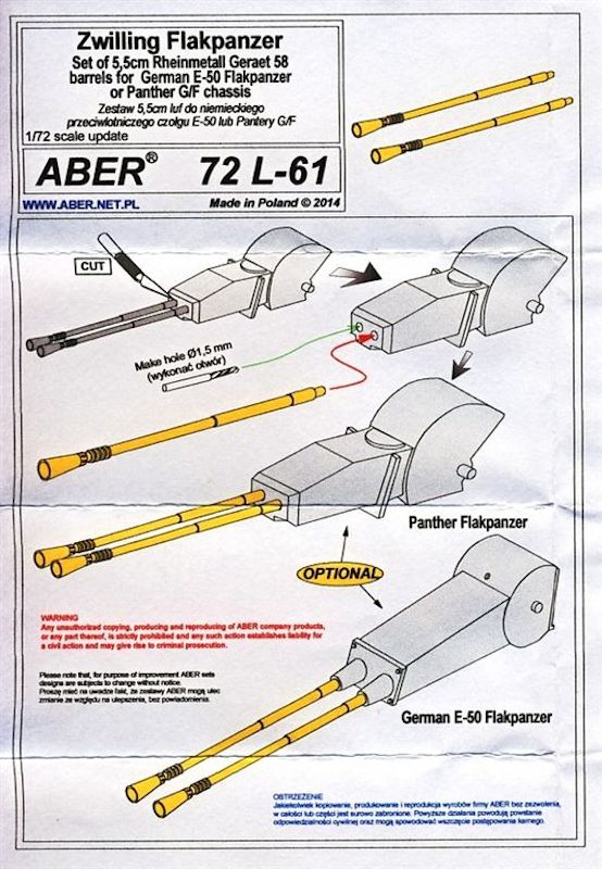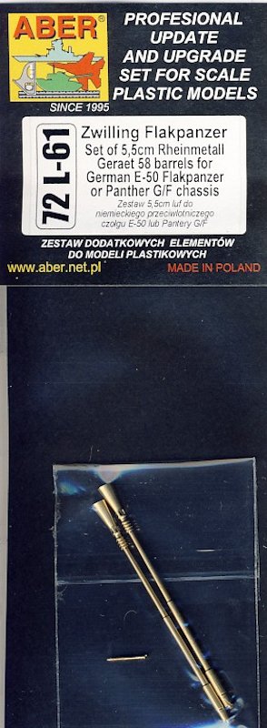 Für die Flakpanzerbausätze von Dragon in 1/72 hat ABER Rohre für die Flakwaffen in 1/72 herausgebracht. Es gibt zwei Rohre aus Messing. Die Mündung und die Schlitze sind hohl.