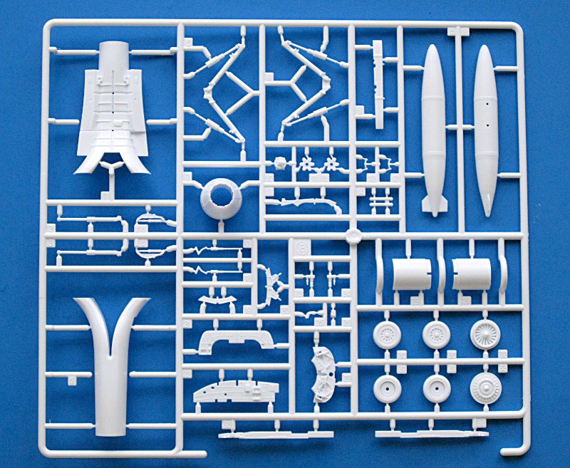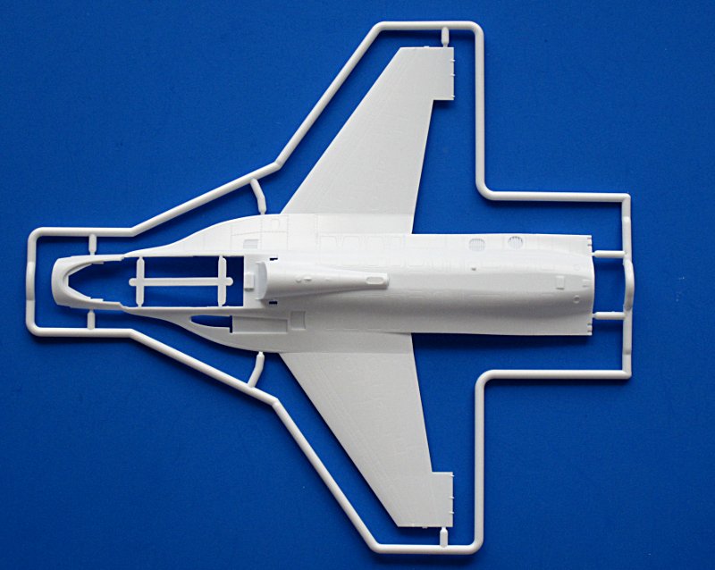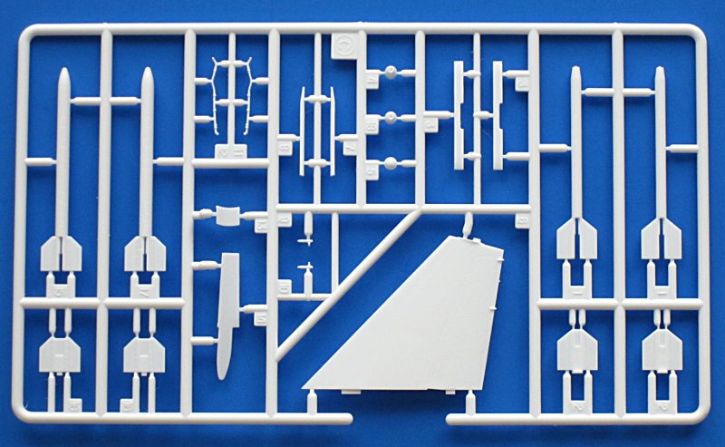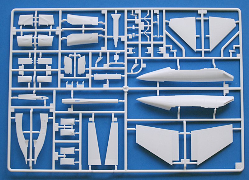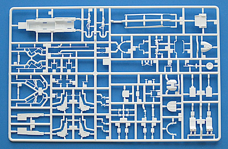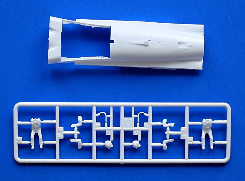 Die Aufteilung der Baugruppen ist typisch für F-16-ähnliche Flugzeuge und erinnert an die F-16 von Tamiya. Das Zweimann-Cockpit ist auch gut detailliert. Selbst die Schleudersitze sehen ganz gut aus, aber es sind keine Gurte enthalten. Dafür liegen zwei ansprechend gestaltete Besatzungsmitglieder in unterschiedlichen Posen bei. Die Cockpithaube kann wahlweise offen oder geschlossen Dargestellt werden ebenso die Airbrakes am Heck. Das Fahrwerk kann belastet (am Boden stehend) oder unbelastet (nach dem Start bzw. vor der Landung) gebaut werden. Für das Bug- und Hauptfahrwerk liegen Alternativteile bei. Außerdem könne zwei Einstiegsleitern gebaut werden.