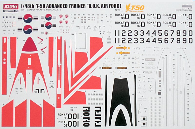 Bausatz: Der koreanische Hersteller Academy bringt mit diesem Modell nach längerer Zeit mal wieder einen neuen Bausatz in 1/48 heraus. Das Objekt ist der landeseigene Trainer T-50 Golden Eagle und wäre wohl von keinem anderen größeren Hersteller herausgebracht worden. Positiv für Academy würde sich sicher ein Entscheid Israels für den Trainer auswirken, aber auch so wird es weitere Varianten des Flugzeugs geben.