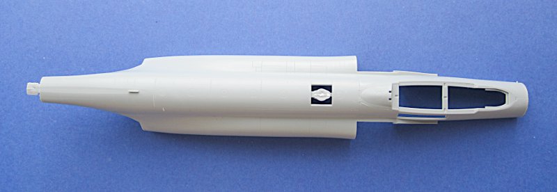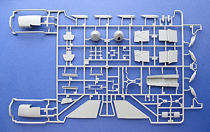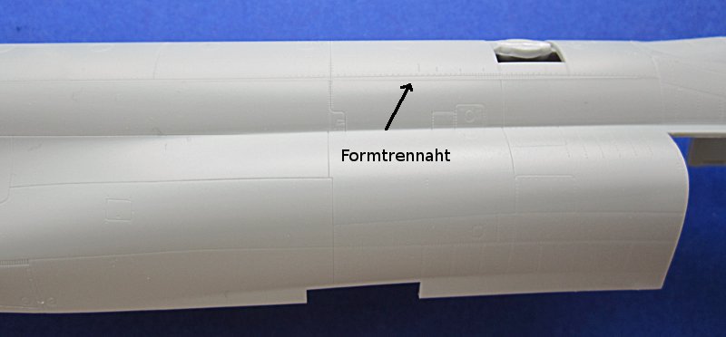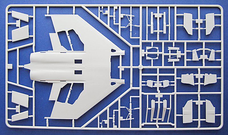 Hier bietet Academy Oberflächendetails vom Feinsten. Fast jeder Gussrahmen hat mindestens einen Einschub (aka slide mold) um Teile möglichst aus einer Form zu bekommen und das Kleben und die damit verbundenen Klebenähte zu vermeiden. Rumpf, Lufteinläufe und der Steiß sind hier sicherlich am auffälligsten. Am einteiligen Rumpf muss man die Kontaktstellen der Formteile ein wenige mit Stahlwolle glätten, aber das ist nicht weiter schlimm.
