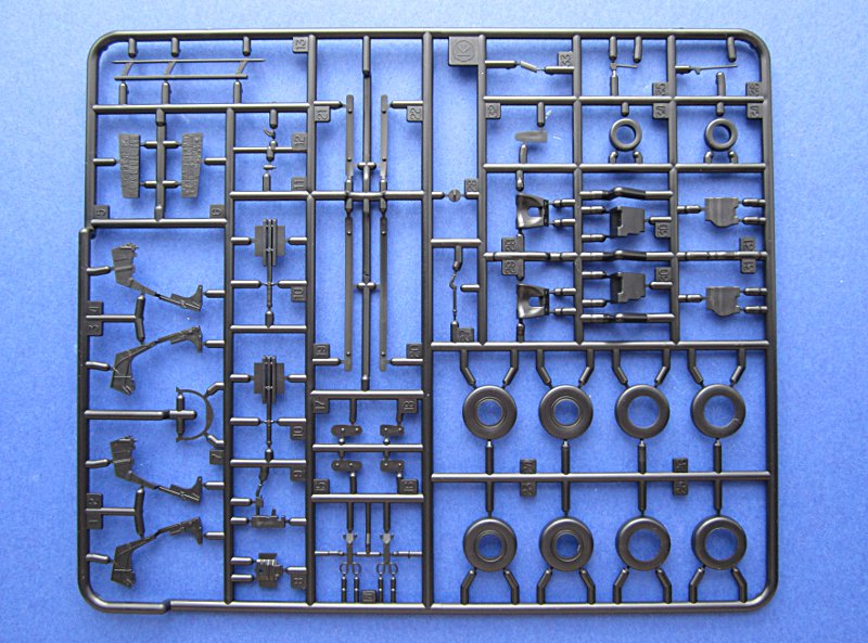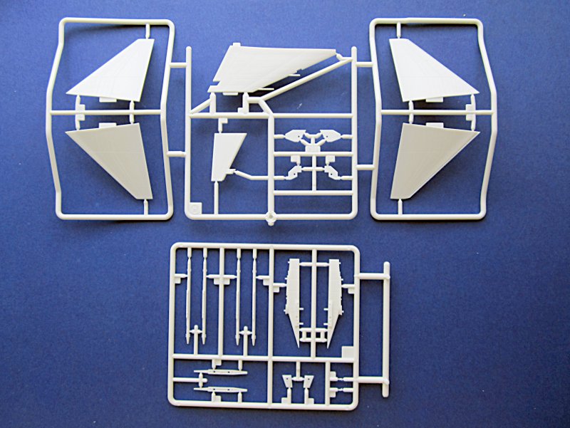 Darunter findet man im nicht bis zum Rand vollgepfropften Karton die Spritzlinge in weiß, grau und Schwarz. Bei einem Modell dieser Komplexitätsklasse, finde ich dies eher unschön, denn die meisten gebauten Modelle werden sicher auch bemalt werden – wahrscheinlich wird dies aber nur ein Bruchteil der verkauften Modelle sein. Ich bin davon also nicht so begeistert und hätte lieber einen einfarbigen Bausatz. Nun gut, wenden wir uns den Teilen zu.