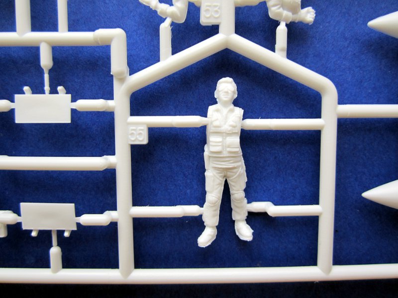 Die Detaillierung im Cockpit ist in Ordnung, auch wenn Zubehörhersteller hier sicher noch Spielraum für ihre Produktpalette haben. Es gibt zwei sitzende Piloten für das Cockpit und einen stehenden. Letzterer hat irgendwie etwas von einem anderen (musikalischen) Koreaexport und irgendwie erwartet man, dass er gleich los hüpft...