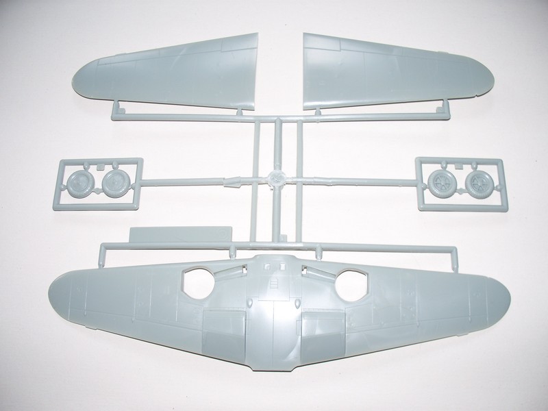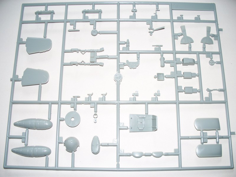 Ausgesprochen feine negative Gravuren sowie die Darstellung der erweiterten Bugpartie zur Aufnahme des leistungsstärkeren Daimler-Benz DB-605 D Motors sind die positiven Charakteristika des kleinen Modells. Auch die Kanzelteile sind klar und ohne Schlieren gefertigt.