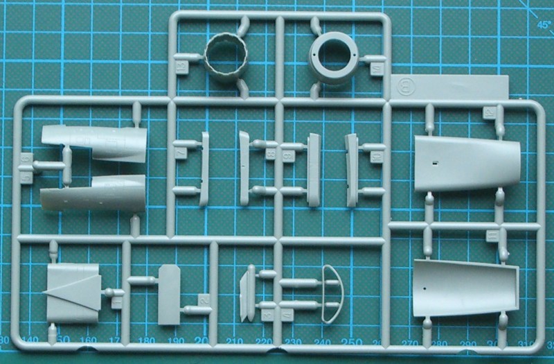 Der Rumpf ist horizontal geteilt. Flächen und Höhenleitwerk sind jeweils einteilig ausgeformt. Das Seitenleitwerk besteht aus vier Teilen. Alle sichtbaren Oberflächen sind mit feinen vertieften Stoßkanten und Erhöhungen an erforderlichen Stellen modelliert. Für die Kanone ist eine eigenständige Abdeckung vorgesehen, die den Laufkanal rund erscheinen lässt.