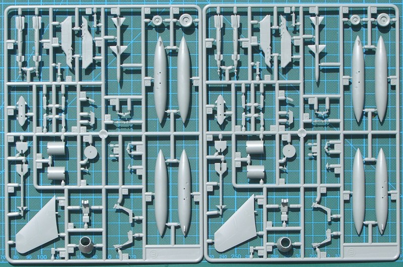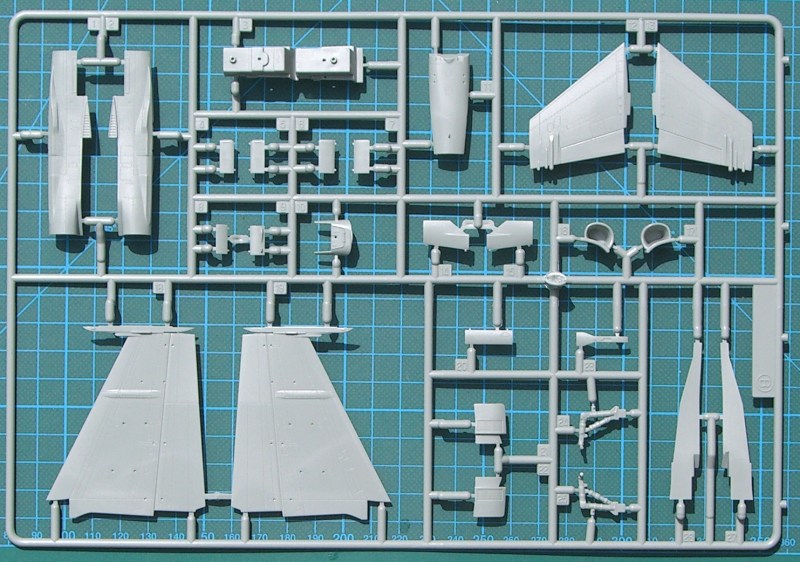 Bei der Beurteilung eines 1/72er Bausatzes darf man die zum Teil hervorragenden 1/48er oder 1/32er Modelle zwar im Auge behalten, doch wäre ein Vergleich mit dem Aufbau der Formen und mit der Zahl der Einzelteile sowie deren Detaillierung schlichtweg falsch. Im folgenden also der ungetrübte Blick auf den Kasten seinem wichtigsten Teil, dem Inhalt mit einem Seitenblick auf seine Vorgänger aus anderen Häusern.