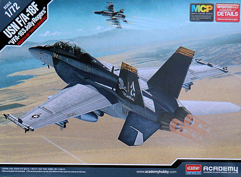 Vorbild: Die Boeing F/A-18F Super Hornet ist die zweisitzige Version der seit 1999 im Dienst der US Navy stehenden F/A-18E. Ab 2006 ersetzte die F/A-18E/F auch die Grumman F-14 Tomcat bei der US Navy. Bei dieser werden die Flugzeuge in den Staffeln typenrein eingesetzt. Hier gibt es auf den Trägern jeweils eine Staffel Einsitzer F/A-18E und eine Staffel Doppelsitzer F/A-18F Super Hornet. In Australien ersetzten ab Dezember 2012 24 F/A-18F Super Hornet die überalterte F-111 Flotte bei der RAAF.