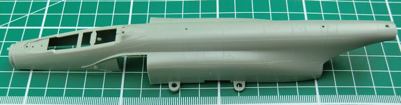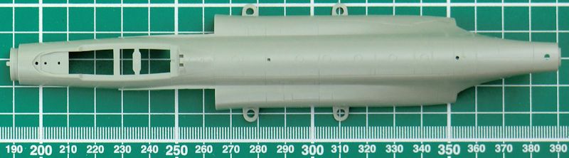Die untere Tragflächenhälfte nimmt das Cockpit auf und darauf werden die Triebwerksauslässe befestigt. Dann kann man die obere Rumpfhälfte mittels großer Passzapfen darauf befestigen. Einfach toll!