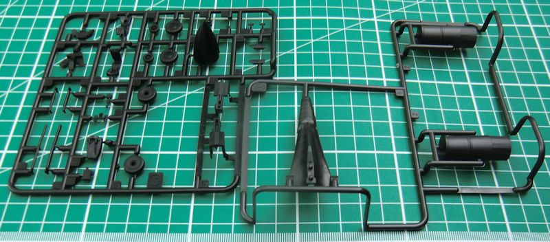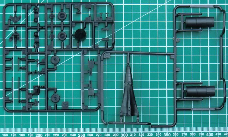 Die beiliegende Bewaffnung und die Tanks sehen schon sehr realistisch aus. Das gilt insbesondere für die Leitwerke der Raketen. Leider ist die Kanzel nur einteilig. Hier hilft nur selbst ziehen, auf ein passendes Zubehörteil warten oder das Cockpit bleibt zu.