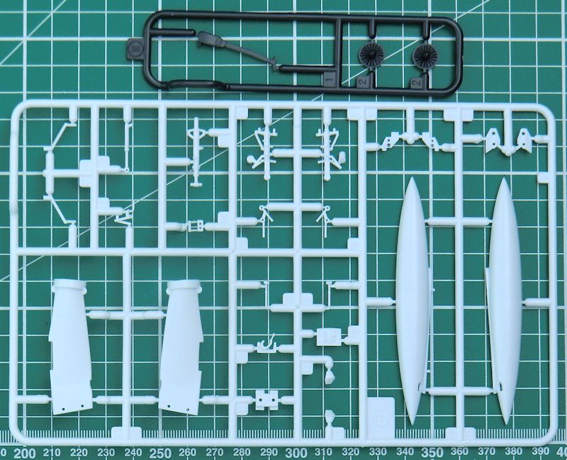 Fahrwerks- und Landeklappen haben große Zapfen. Damit lassen sich diese Teile gut fixieren und es bleibt realistisch. Das Fahrwerk selbst sieht aus der Kiste raus schon gut aus. Aus technologischen Gründen sind die Fahrwerksscheren aus Kunststoff natürlich zu unrealistisch. Hier kann man mittels geätzter Teile Abhilfe schaffen.