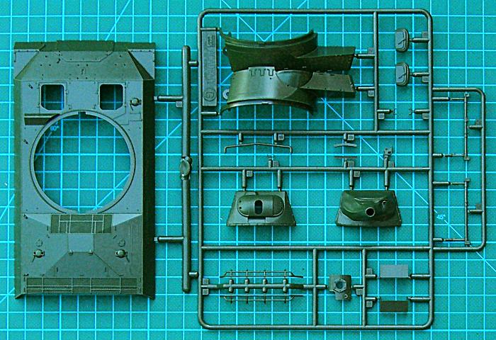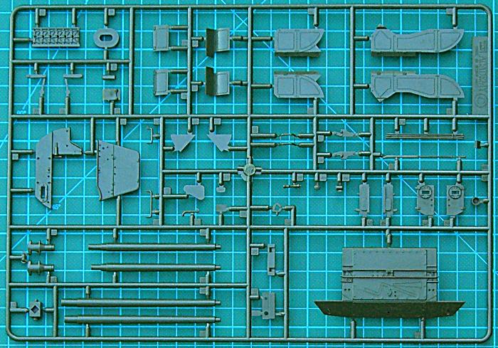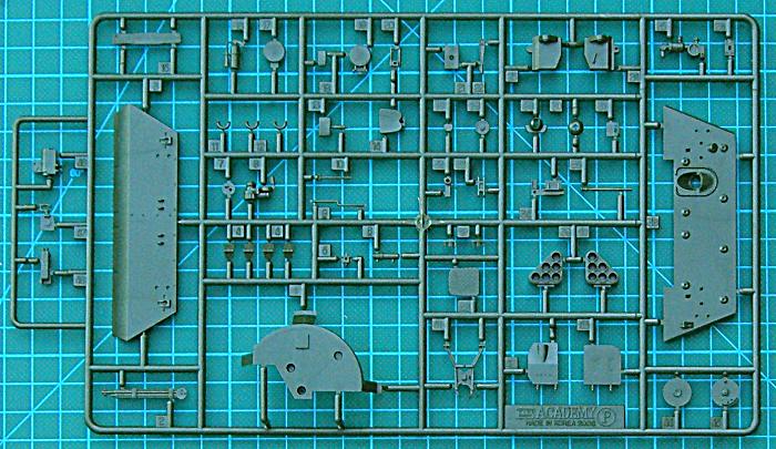 Bausatz: ACADEMY-EUROPE hat hiermit den zweiten 35er Fahrzeugbausatz vorgelegt. Er ist, ebenso wie das Original, eine Kombination der bei ACADEMY vorhandenen Jackson- und Hellcat-Bausätze. Das Ergebnis ist ein interessanter Bausatz, dessen Spritzgussteile eine hervorragende Qualität haben. Die Ketten sind aus Vinyl. Der kleine Decalbogen wurde bei CARTOGRAF gedruckt.