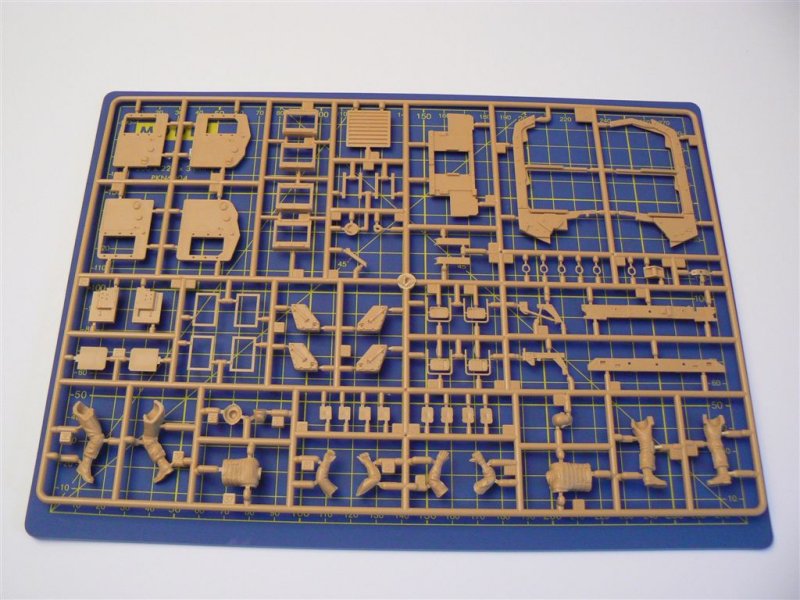 Der Innenraum ist recht Komplett und gut wiedergegeben. Academy hat auch an den LCD Bildschirm des Beifahrers gedacht. Alle Türen können geöffnet werden. Gut wiedergegeben ist auch der nach oben offene gepanzerte MG Turm. Das Cal. 50 MG ist neu und sehr gut detailliert. Für dieses liegen unterschiedliche Läufe bei. Verschiedene Teile die dem Bausatz beiliegen, werden für dieses Modell nicht gebraucht. Es scheint das Academy, noch weitere HMMWVs erscheinen lassen will. Man darf gespannt sein.