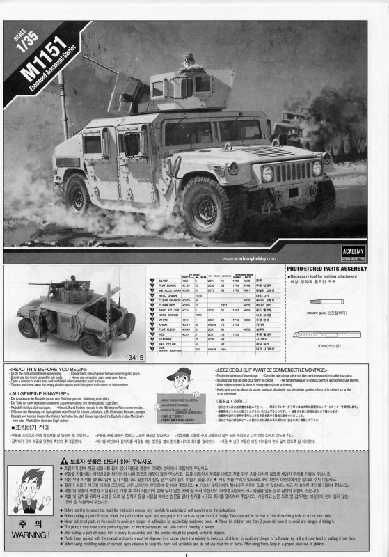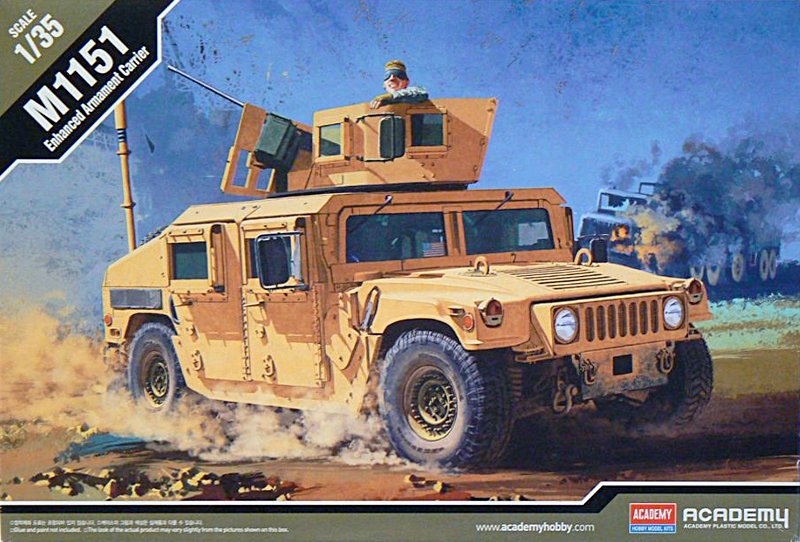 Der Bausatz: Nachdem uns schon die Firma Bronco, vor Kurzem mit frischen HMMWV Modellen Versorgte den M 1114 UP- ARMORED TACTICAL VEHICLE und dem M 1114 HEAVY, Legt Academy mit dem M 1151 Enhanced Armament Carrier nach. Bei diesem Modell handelt sich um einen komplett neuen Bausatz Academy hat nicht auf Formen ihrer ursprünglichen Hummer Bausätze, die vor Jahren auf den Markt erschienen zurückgegriffen. Die neuen Teile sind alle sämtlich gut detailliert.