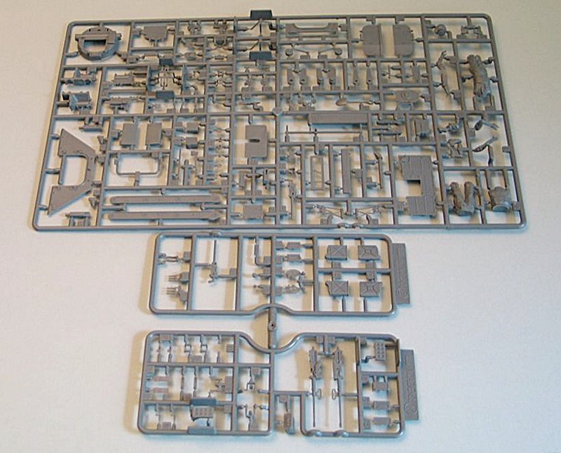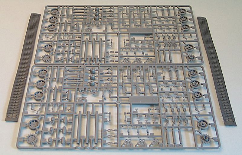 Nach öffnen des Kartons wird man nicht Enttäuscht. Auf 5 Spritzgussästen bekommt man sind eine Vielzahl von sehr guten Detaillierten und filigranen Bauteilen. Jedes der 106 mm Rückstoßfreien Leichtgeschützen ( Recoil-less Rifle) besteht aus 12 Einzelteilen. Und davon gibt es 6 Stück. Das Fahrwerk ist sehr gut reproduziert worden. Auch die Vinylkette ist gut detailliert.