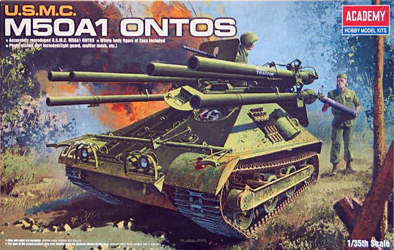 Bisher gab es von diesem Fahrzeug (nach Hörensagen) nur ein grauenhaftes Resinmodell des Ontos. Daher war die Freude bestimmt bei vielen Modellbauern groß, als Academy bekannt gab, dieses urige Fahrzeug im Maßstab 1:35 als Spritzgussbausatz herausbringen.