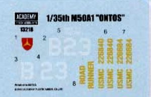 Ein kleine aber sehr sinnvolle Ätzteilplatine liegt dem Bausatz bei. Die Bauanleitung ist sehr gut gelungen. Nach 12 Bauabschnitten ist man stolzer Besitzer eines Modells des Ontos. Aus den Decalbogen kann ein Fahrzeug gebaut werden. Leider ist aus der Bauanleitung nicht ersichtlich um welche Einheit es sich handelt. Nach Recherche aus dem Osprey Vanguard 42 Buch Armour of the Vietnam Wars handelt es sich höchstwahrscheinlich um ein Fahrzeug des 3rd A/T Bn. , USMC; I CTZ 1967 Vietnam. Nichtzuvergessen liegen dem Bausatz zwei gute detaillierte Figuren bei.