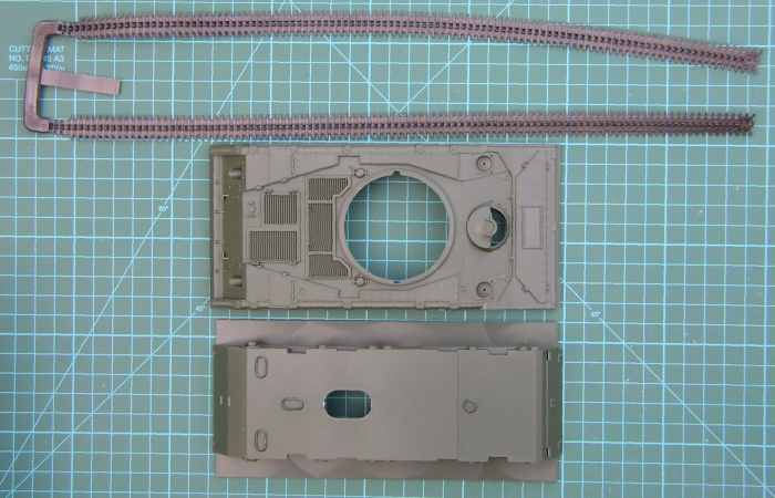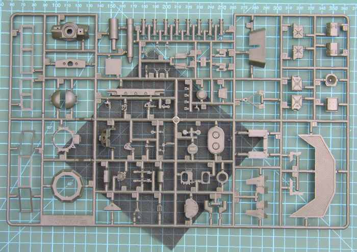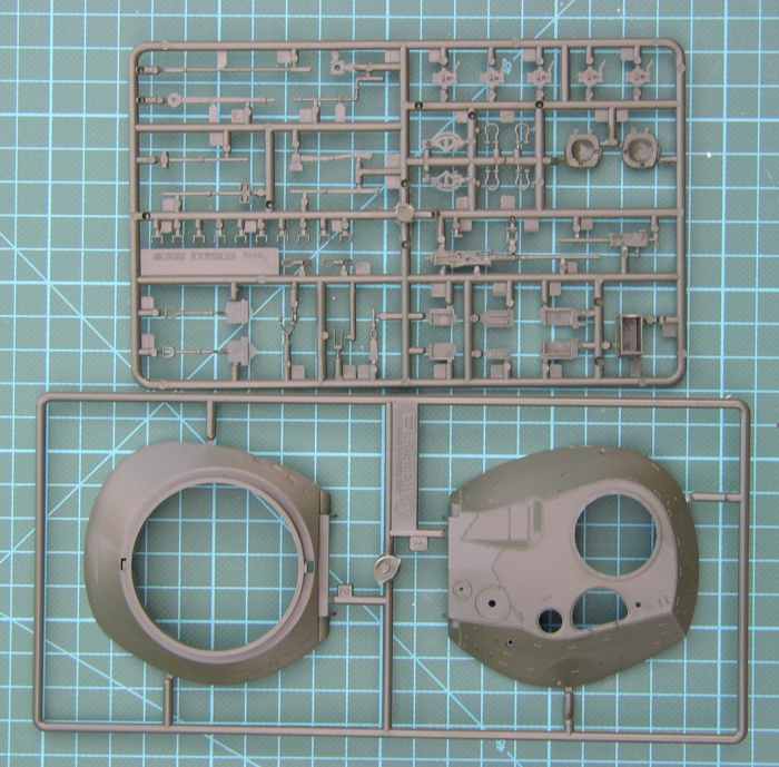 Bausatz: Die Bauteile entsprechen den üblichen neuen ACADEMY-Standard. Sie sind gut detailliert. Die beiden Wannenteile passen perfekt aufeinander. Bei dem Spritzling mit dem "Universalteilen" (Werkzeug etc.) sind einige Teile eine willkommene Ergänzung für die Grabbelkiste. Der Spritzling ist schon aus den neueren Sherman Bausätzen bekannt. Die Bauanleitung ist übersichtlich und zeigt einige Fotos von Bauabschnitten. Auch das Gitternetz ist gut gemacht. Für die "Dummies" hat ACADEMY die erforderlichen Größen als Skizze abgedruckt.