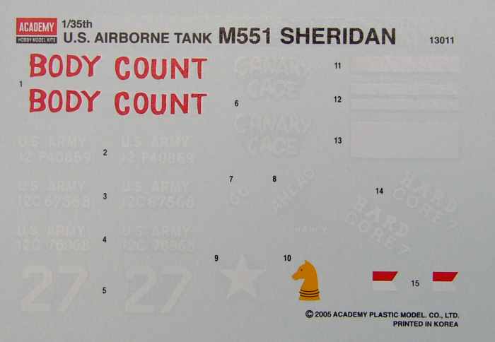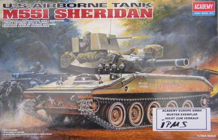 Vorbild: Der M 551 wurde ab 1965 als Luftlandepanzer gebaut. Er war schwimmfähig auf ruhigen Binnengewässern. Seine Hauptbewaffnung bestand aus dem M81 152 mm Mehrzweckgeschütz. Weiterhin waren ein 12,7 mm Fla MG und ein 7,62 mm MG montiert. Zwischen 1967 und 1970 wurde der M 551 in Vietnam eingesetzt. Die letzten Einsätze erfolgten 1991 bei der Operation DESERT SHIELD.