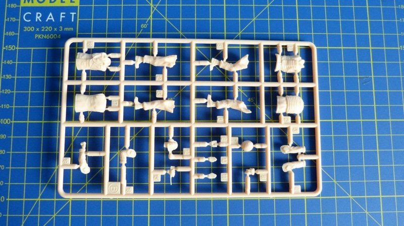 Die einzelnen Teile sind sandfarben gegossen. Zur Darstellung des komplizierten modernen Digitalmustertarnanzuges der U.S Army hat Academy ein Decalsheet mit diesem Muster beigelegt. Das vereinfacht das Gestalten der Figuren doch sehr.