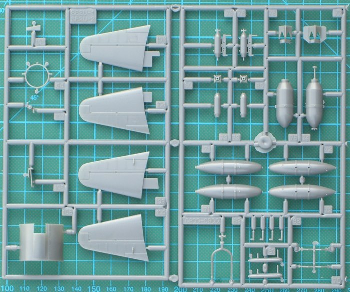 Der komplexe Abwurfmechanismus der zentralen Waffenstation ist fein detailliert. Die Klarsichtteile können in offener oder geschlossener Position montiert werden. Dafür gibt es Alternativteile. Leider gibt es nur Decals für eine Maschine. Inzwischen hat ja Techmod genug Optionen herausgebraucht. Siehe dazu auch die Vorstellungen auf unserer Homepage!