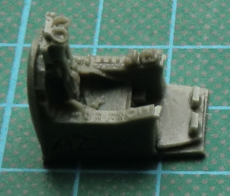 Das Cockpit besteht aus einer Resinwanne mit Schleudersitz, einem geätzten Instrumentenbrett mit Fotofilm und dem Steuerknüppel. Der Schleudersitz ist recht simpel. Das Seiten- sowie das Höhenleitwerk haben scharfe Hinterkanten. Am Bug sollen vier MG-Beulen angeklebt werden. Locations oder Gravuren gibt es nicht und die Bauanleitung hilft wenig weiter. Immerhin gibt es Seitenrisse aus denen man die Lage erahnen kann.