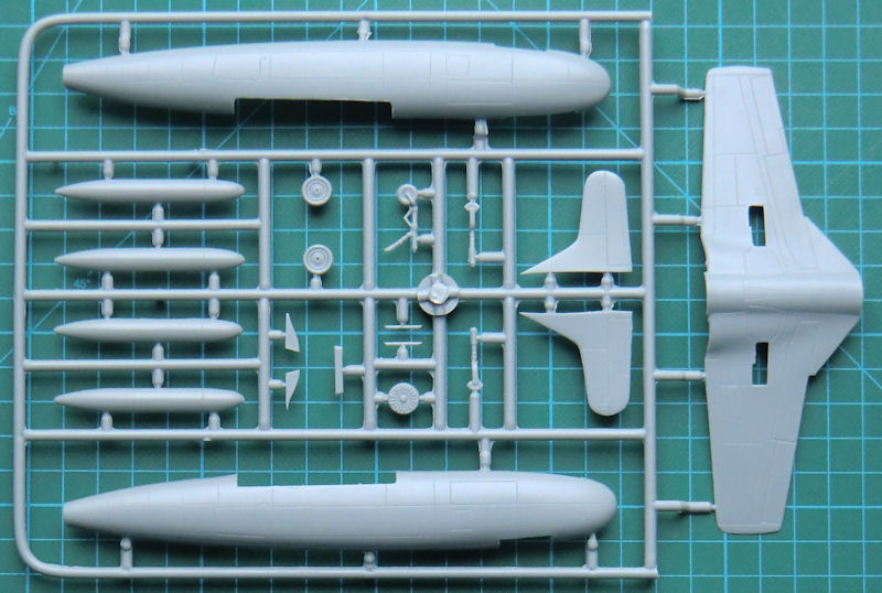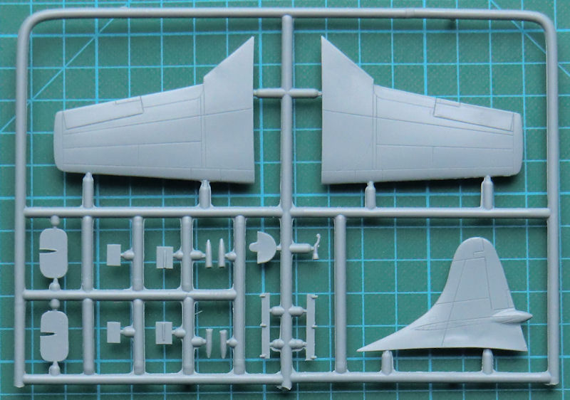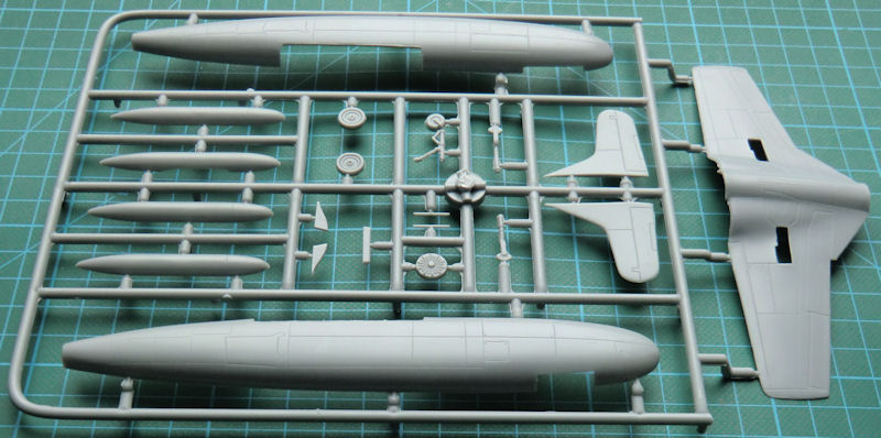 Bausatz: In der attraktiven aber unpraktischen Schüttbox von admiral/AZmodel befinden sich gut verpackt zwei hellgrau Spritzlinge mit 37 Teilen, eine Klarsichtkanzel, ein Resinteil, ein Fotoätzteilbogen mit Fotofilm, ein Decalbogen und die etwas unübersichtliche Bauanleitung. Schnell erkennt man, dass man es hier mit einen einfachen Short-Run-Bausatz zu tun hat, der durch ein paar Fotoätzteile und ein Resinteil aufgewertet wurde. Trotzdem ist die Masse der Teile recht einfach gehalten. Das Bugfahrwerk besteht z.B. aus einem Teil.